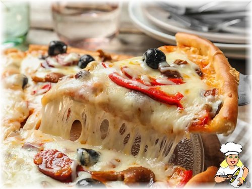 Maya, ılık sütün içinde eritilir. Şeker, tuz, eritilmiş margarin ve yumurta ilave edilir, iyice karıştırılır. Un ilave edilerek kulak memesi yumuşaklığında bir hamur yoğrulur. Yoğrulan hamur, mayası gelinceye kadar bekletilir. Mayası gelen hamur, yağlanmış tepsiye alınır ve tepsi büyüklüğünde açılır. Hamurun üzeri sıvı yağ ile yağlanır. Parmak uçları ile hamura iz verilir. Kenar kısımları hafifçe yükseltilir. Hazırlanan hamur, tepside 10 dakika dinlendirilir. Dinlenen hamur, ısıtılmış fırına verilerek 5-10 dakika pişirilir. Fırından çıkarılan hamurun üzerine ketçap sürülür ve kaşar rendesi serpilir. Kaşarın üzerine ince dilimlenmiş sucuk, sosis, salam, mantar, biber ilave edilir. Onların arasına çekirdekleri çıkartılmış zeytin, küp doğranmış domates, ince kıyılmış sarımsak konur. Tuz, kekik ve pul biberi atılır. Üzerine bolca kaşar rendesi serpilir. Hazırlanan pizza, 200 derece fırında 15-20 dakika pişirilir. Fırından çıkarılır. Dilimlenerek sıcak servis yapılır.
